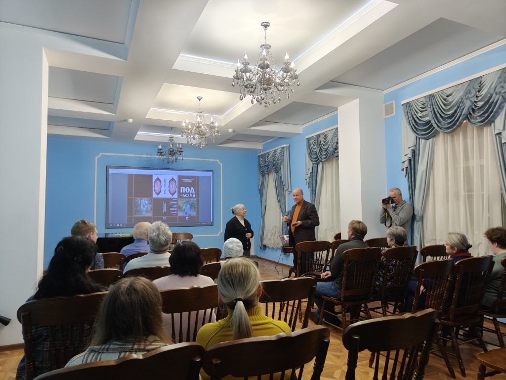 Открыл презентацию В. В. Макаренков – Член Союза российских писателей, председатель Смоленского отделения Союза российских писателей, редактор–составитель альманаха «Под часами», член Союза журналистов России. Он рассказал о структуре альманаха, об авторах, которые в нем публикуются, а также поведал присутствующим о планах на будущее.