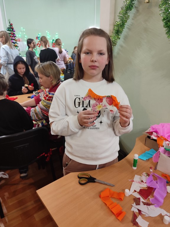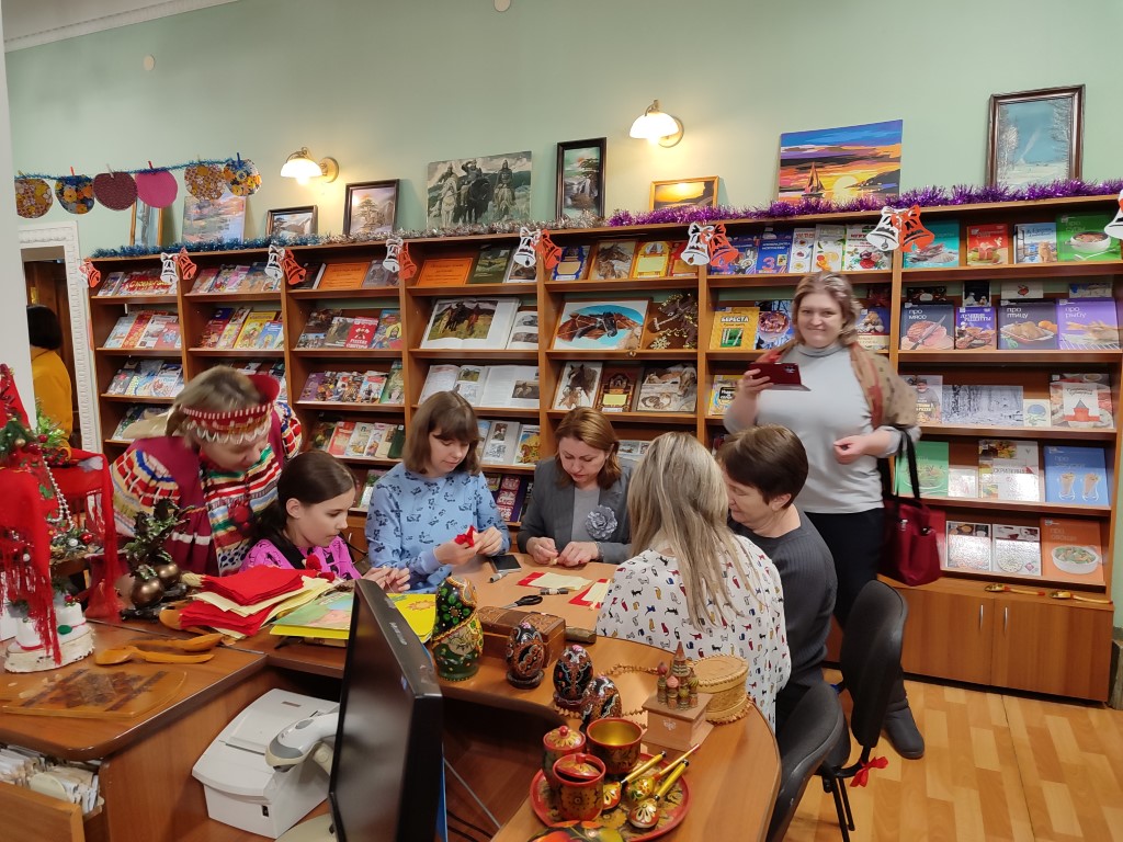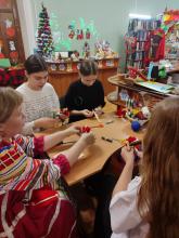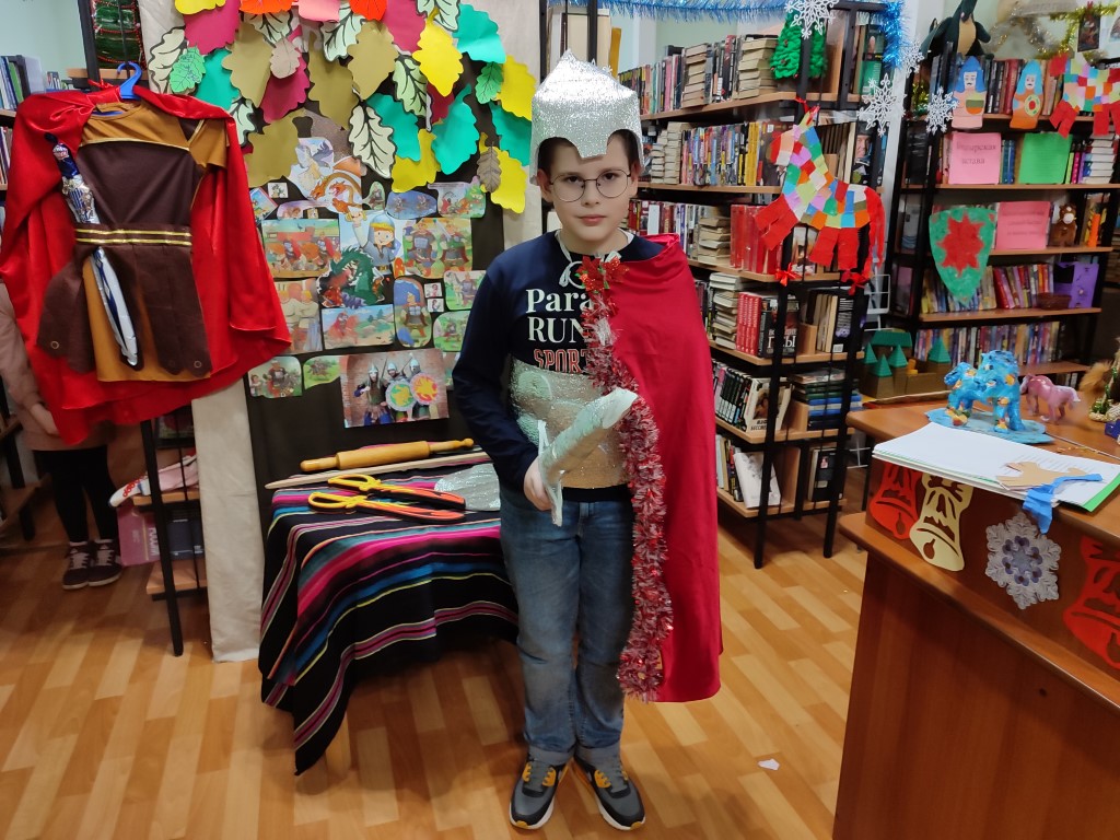 В фотозоне участники с энтузиазмом примерили на себя «богатырские доспехи»: щит, шлем, кольчугу и плащ; узнали о вооружении русского воина (палица, копье, щит, меч, стрелы, булава, лук); прикрепили к «богатырскому дубу» листочки с новогодними пожеланиями; с увлечением изготовили поделки на мастер-классах: богатырского коня из ткани и в технике декупаж, щит и листок дуба в технике обрывной аппликации.