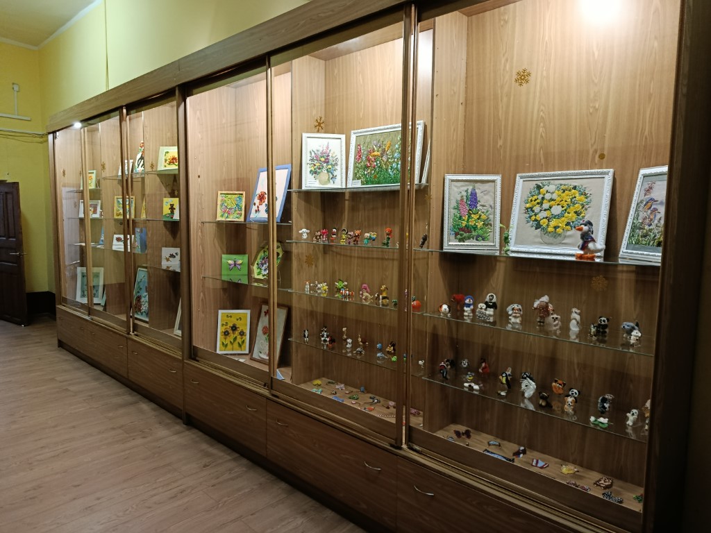 Все работы, представленные на выставке, выполнены в разных видах рукоделия: квиллинг, бисероплетение, вышивка лентами.