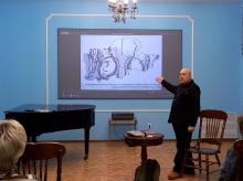 Владимир Викторович рассказал, что геральдические символы (как правило, парные изображения львов) появляются на Руси в разных формах уже в 12 веке. Их обнаруживали, как правило, на различных церковных объектах либо княжеских печатях. Часто эти символы были аналогичны знакам, обнаруженным при археологических исследованиях бывших территорий других древнерусских княжеств.