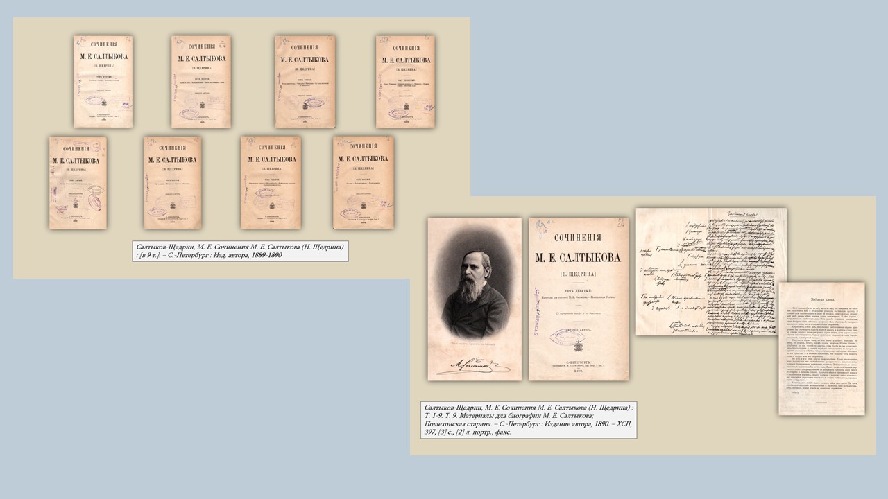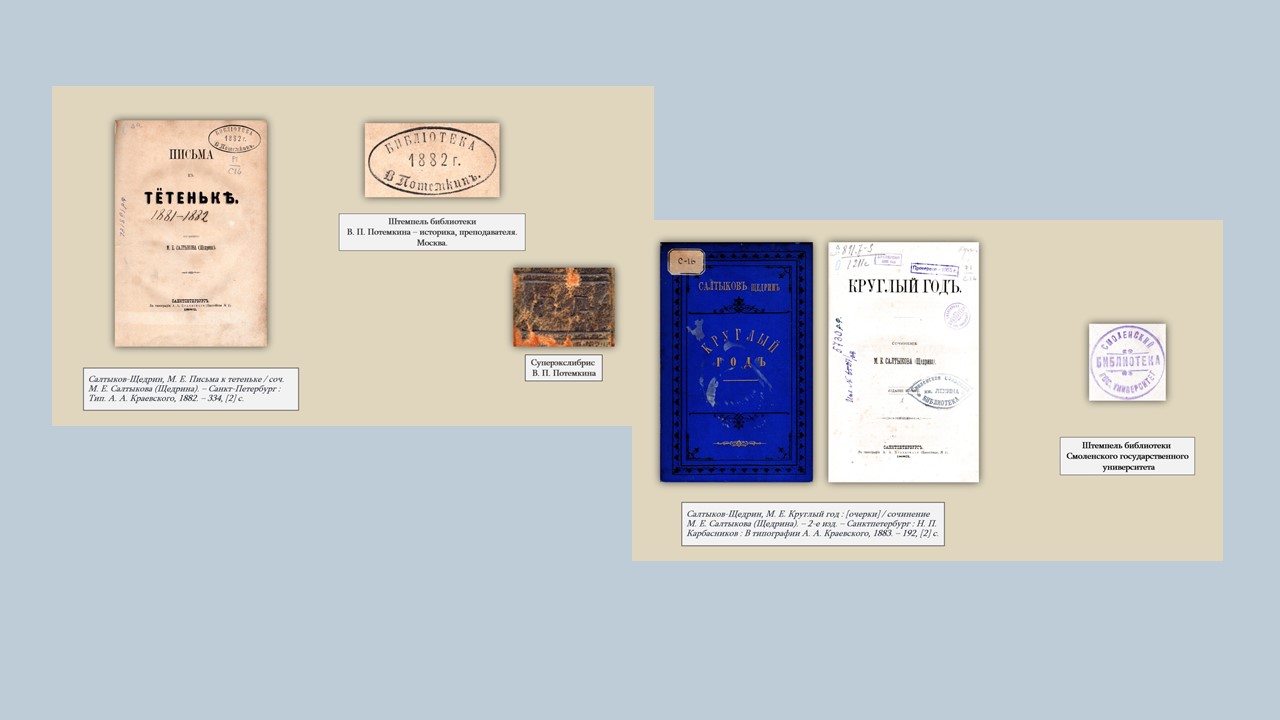 Наши сотрудники представили видеодоклад о работе Смоленской областной библиотеки им. А. Т. Твардовского по сохранению и популяризации наследия Салтыкова-Щедрина. В частности, они рассказали о 15 прижизненных изданиях писателя из редкого фонда библиотеки, имеющих статус книжных памятников (девятитомное собрание сочинений и шесть отдельных книг).