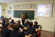 В преддверии Дня Защитника Отечества сотрудники библиотеки провели в Смоленской гимназии № 1 имени Н. М. Пржевальского историческое мероприятие на тему «Светлейший князь - великий флотоводец!».