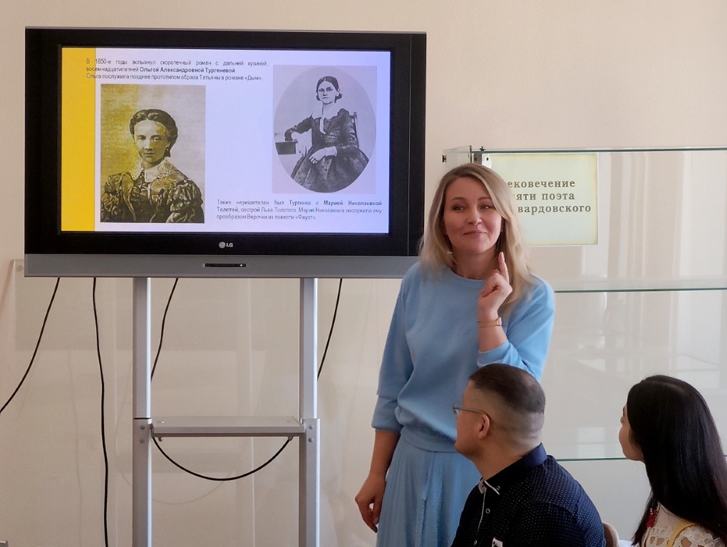 Сотрудники редкого фонда библиотеки провели увлекательный обзор редких изданий Ивана Сергеевича Тургенева и книг, посвященных его жизни и творчеству. Демонстрация прижизненных изданий писателя вызвала неподдельный интерес и позволила прикоснуться к истории литературы. Особое внимание было уделено переписке Тургенева с Полиной Виардо, а также с выдающимися русскими и французскими писателями – это стало настоящим окном в мир литературных связей и личных переживаний гения.