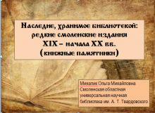 Сотрудник отдела редкого фонда Ольга Михалик представила областную библиотеку им. А.Т. Твардовского на международной научно-практической конференции «Охрана и популяризация культурного наследия: мировой и отечественный опыт». Площадкой проведения конференции стал Витебский государственный университет (Республика Беларусь).